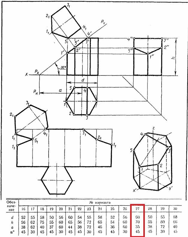 Усеченная призма. Вариант 27 ЧЕРТЕЖ