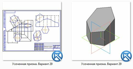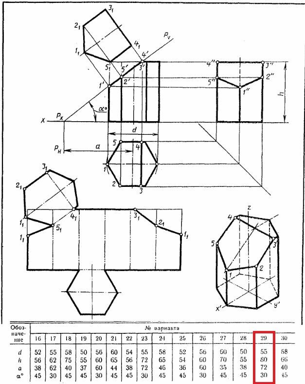 Усеченная призма. Вариант 29 ЧЕРТЕЖ