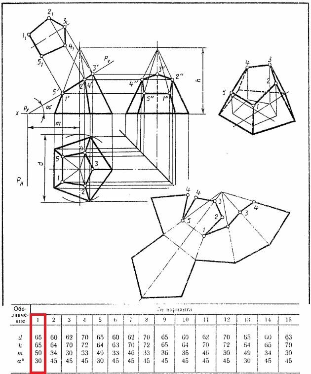 Усеченная пирамида. Вариант 1 ЧЕРТЕЖ