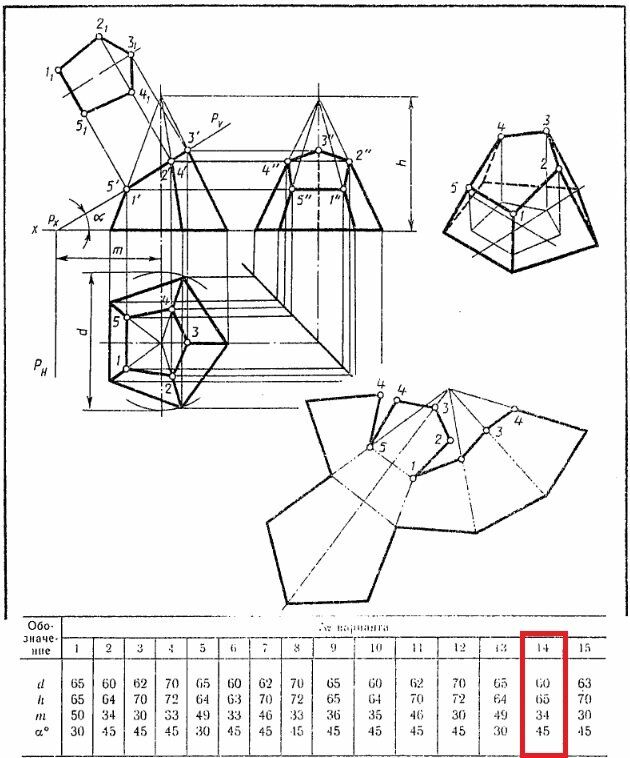 Усеченная пирамида. Вариант 14 ЧЕРТЕЖ