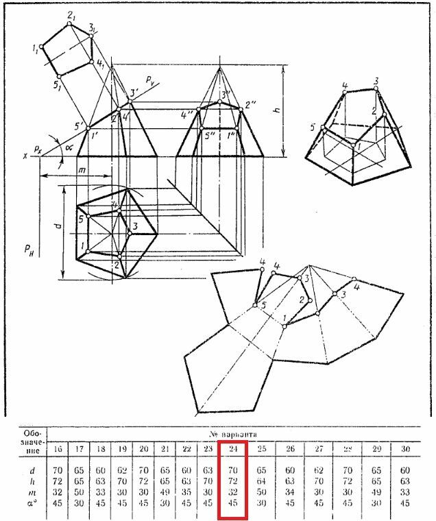 Усеченная пирамида. Вариант 24 ЧЕРТЕЖ