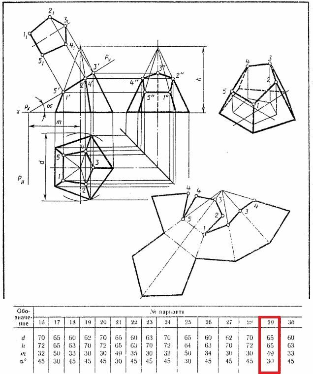 Усеченная пирамида. Вариант 29 ЧЕРТЕЖ