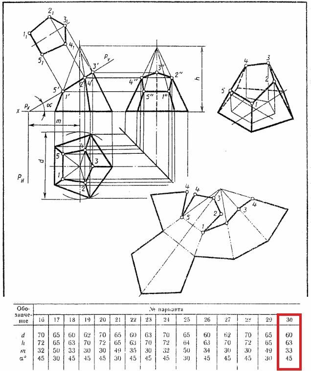 Усеченная пирамида. Вариант 30 ЧЕРТЕЖ