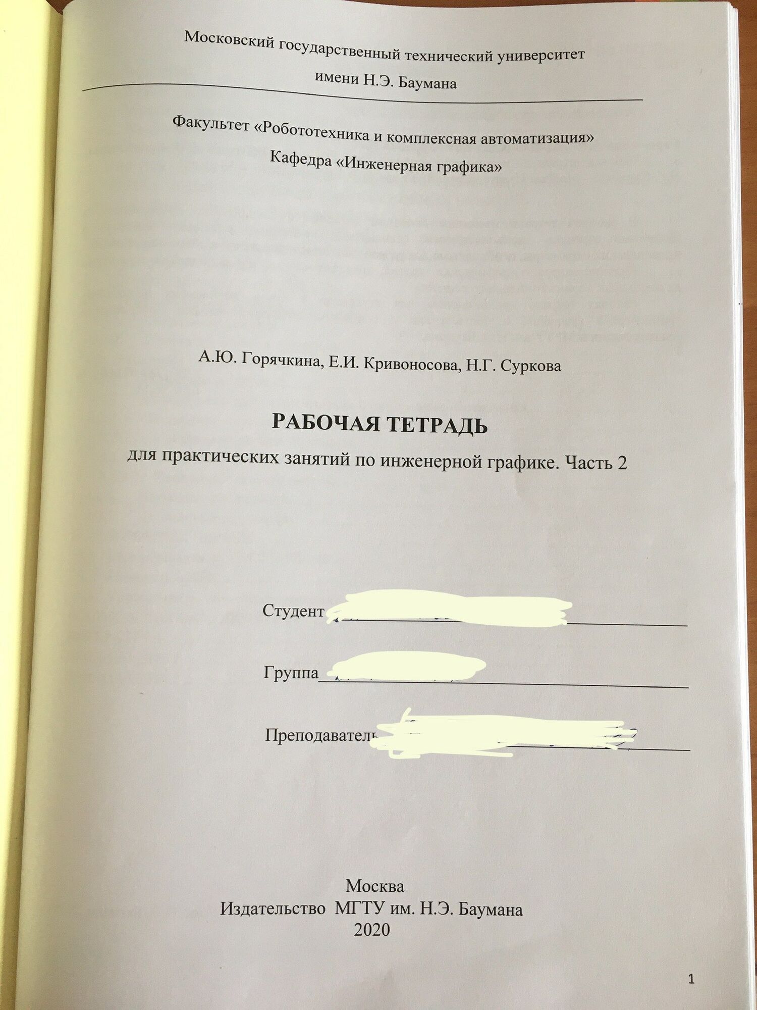 Для студентов МГТУ им. Н.Э.Баумана по предмету Инженерная графикаРабочая тетрадьРабочая тетрадь