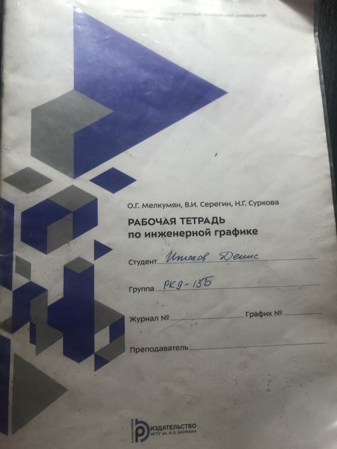 Для студентов МГТУ им. Н.Э.Баумана по предмету Инженерная графикаРабочая тетрадьРабочая тетрадь