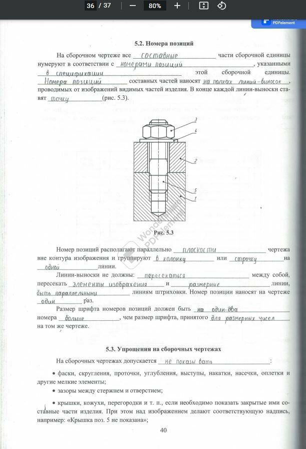 Заполненная рабочая тетрадь - Семестр 2 (рабочая тетрадь для практических занятий по инженерной графике. Часть 2)