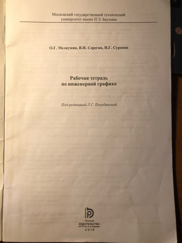 Для студентов МГТУ им. Н.Э.Баумана по предмету Инженерная графикаРабочая тетрадьРабочая тетрадь