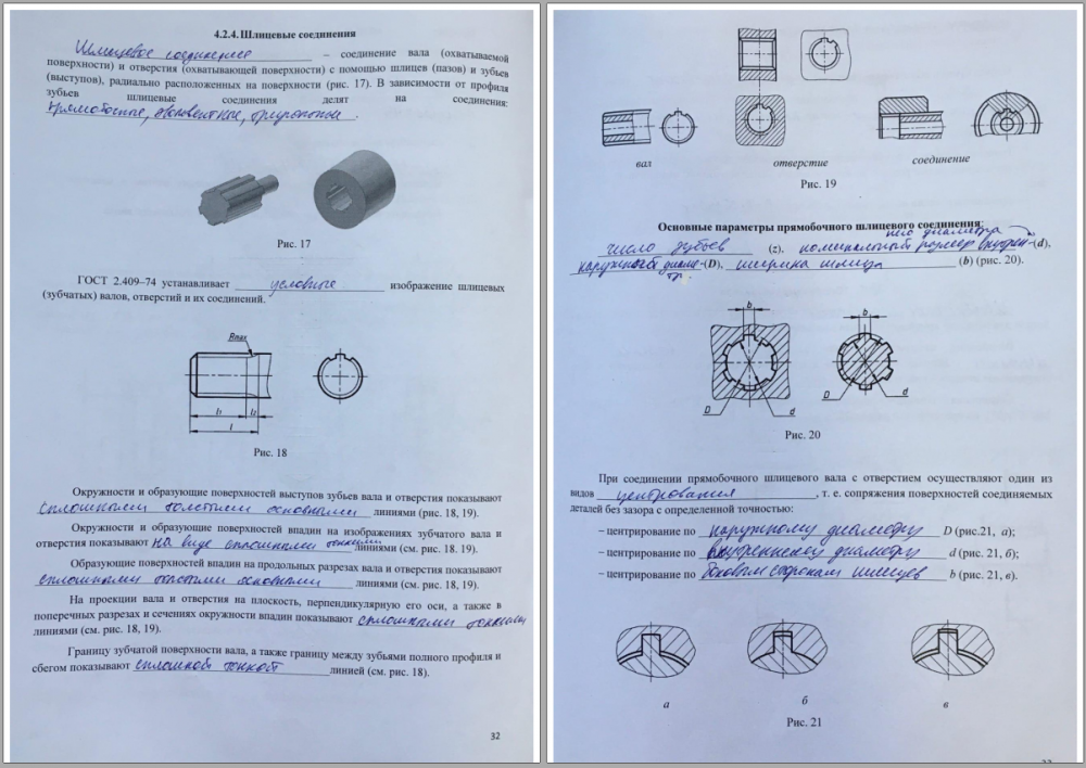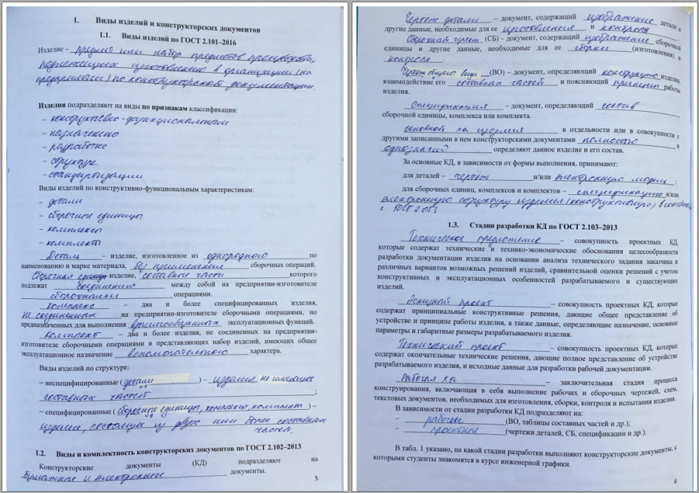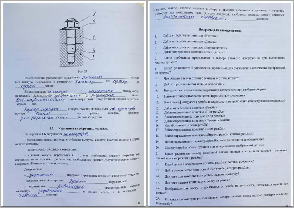 Заполненная рабочая тетрадь по Инженерной графике 2-го семестра.