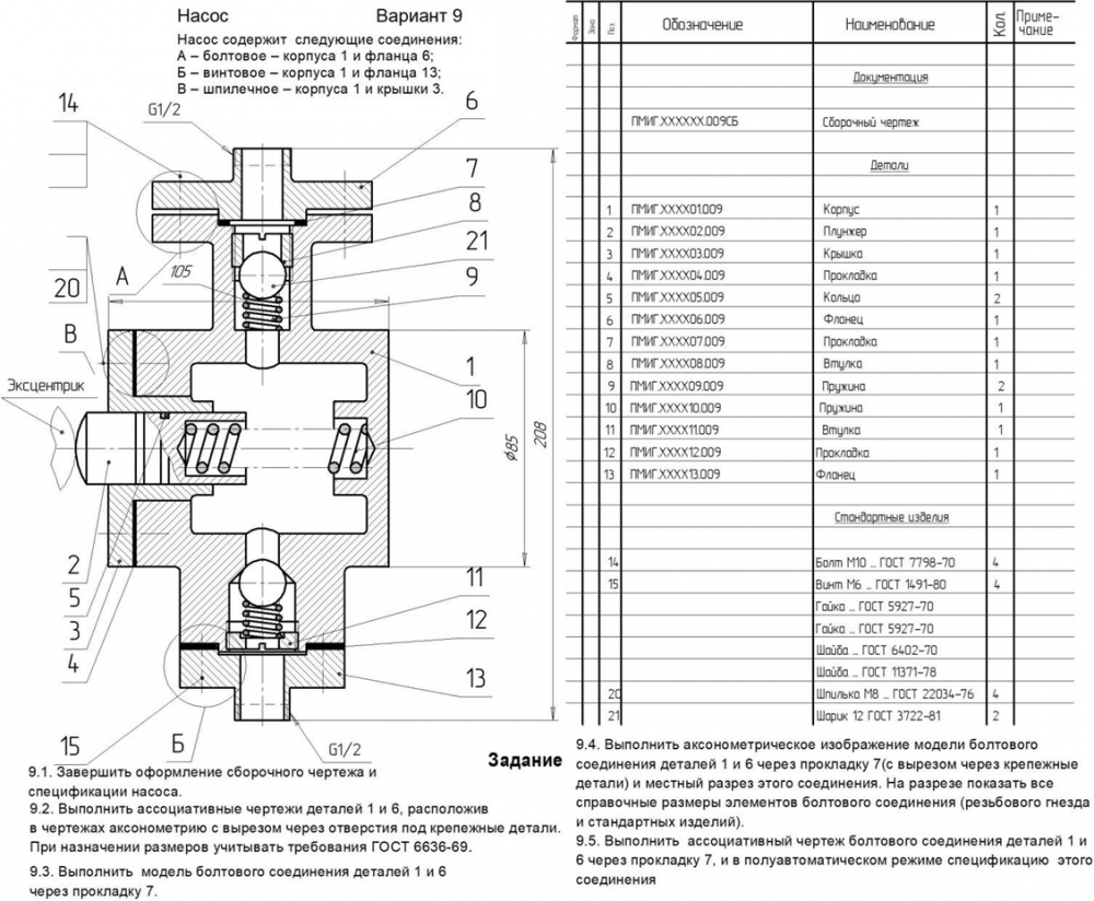 В данной работе надо было выполнить трѐхмерное моделирование и оформление конструкторской документации в системе КОМПАС-3D v.18 для насоса с использованием стандартных изделий в соответствии с требованиями государственных стандартов.