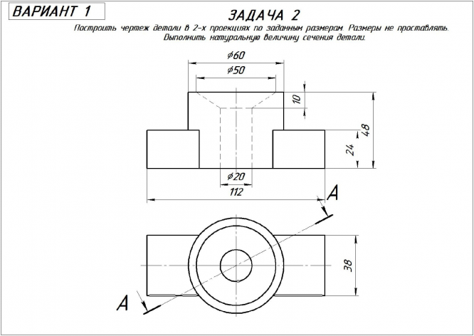 Главная » Учебные материалы » Инженерная и компьютерная графика (ИКГ) » Решения задач » ИГЭУ им. Ленина » 1 семестр » Номер 2 » Вариант 3 » Построить чертеж детали в 2-х проекциях по заданным размерам. Размеры не проставлять. Выполнить натуральную величину сечения детали.