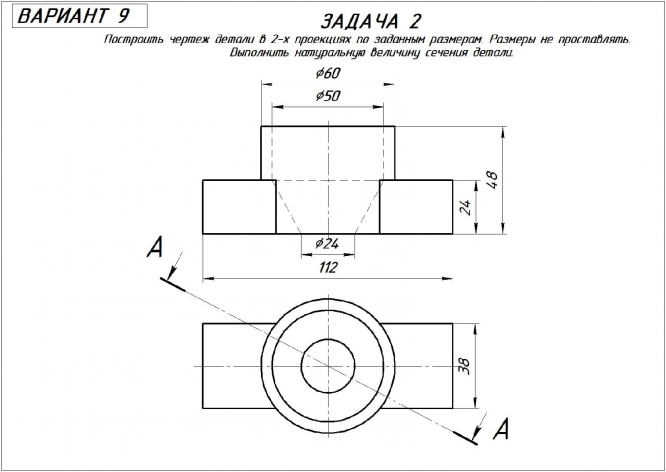 Главная » Учебные материалы » Инженерная и компьютерная графика (ИКГ) » Решения задач » ИГЭУ им. Ленина » 1 семестр » Номер 2 » Вариант 9 » Построить чертеж детали в 2-х проекциях по заданным размерам. Размеры не проставлять. Выполнить натуральную величину сечения детали.