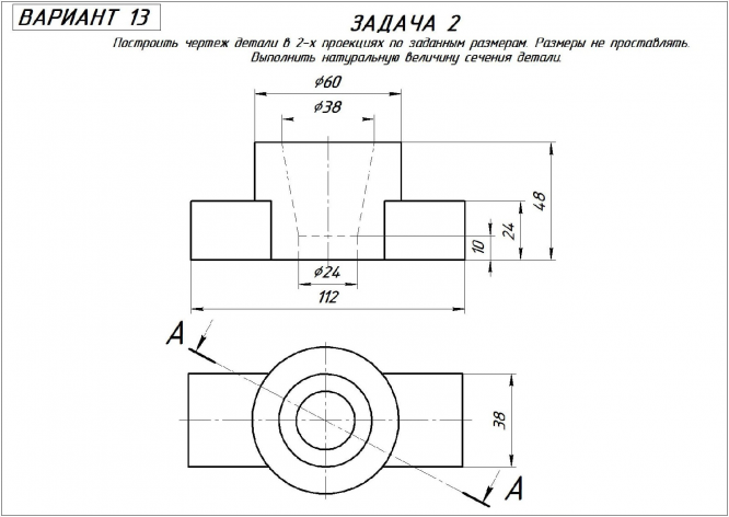 Главная » Учебные материалы » Инженерная и компьютерная графика (ИКГ) » Решения задач » ИГЭУ им. Ленина » 1 семестр » Номер 2 » Вариант 13 » Построить чертеж детали в 2-х проекциях по заданным размерам. Размеры не проставлять. Выполнить натуральную величину сечения детали.