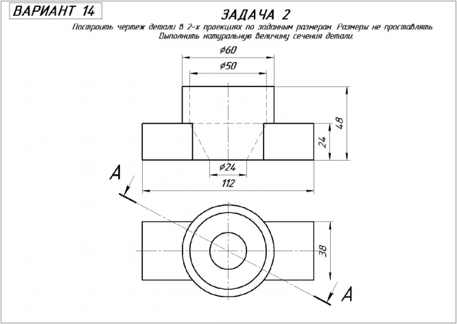 Главная » Учебные материалы » Инженерная и компьютерная графика (ИКГ) » Решения задач » ИГЭУ им. Ленина » 1 семестр » Номер 2 » Вариант 14 » Построить чертеж детали в 2-х проекциях по заданным размерам. Размеры не проставлять. Выполнить натуральную величину сечения детали.