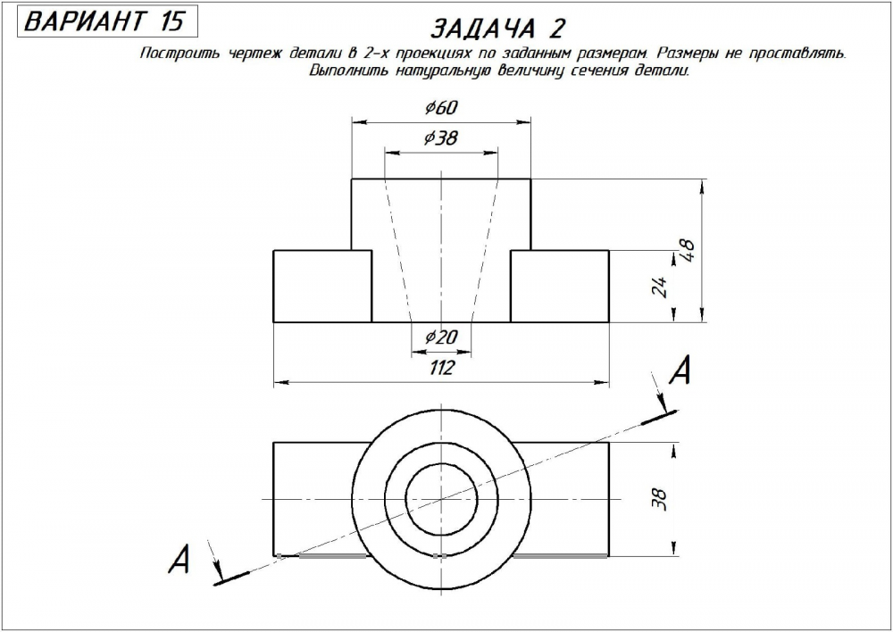 Для студентов ИГЭУ им. Ленина по предмету Инженерная и компьютерная графика (ИКГ)Построить чертеж детали в 2-х проекциях по заданным размерам. Размеры не проставлять. Выполнить натуральную величину сечения детали.Построить чертеж детали в 2-х проекциях по заданным размерам. Размеры не проставлять. Выполнить натуральную величину сечения детали.