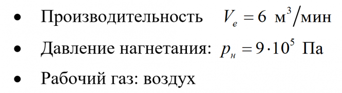 Цель работы: Испытание поршневого V-образного компрессора со следующими параметрами: