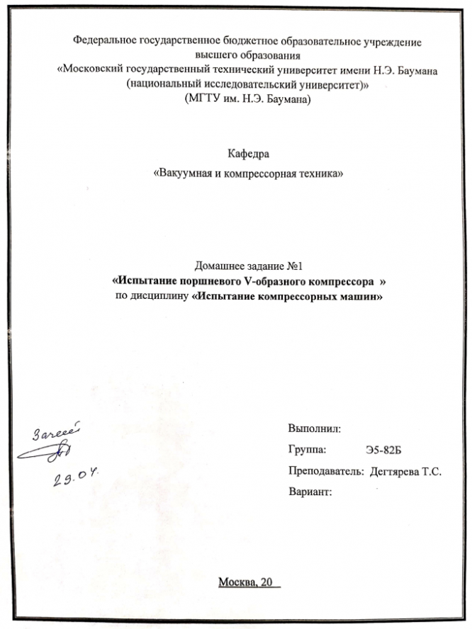 Для студентов МГТУ им. Н.Э.Баумана по предмету Испытание компрессорных машинИспытание поршневого V-образного компрессораИспытание поршневого V-образного компрессора