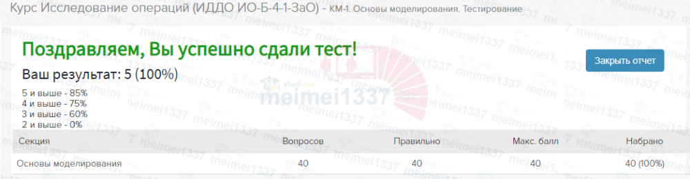 Ответы к заданиям КМ-1: Курс Исследование операций (ИДДО ИО-Б-4-1-ЗаО) КМ-1. Основы моделирования. Тестирование