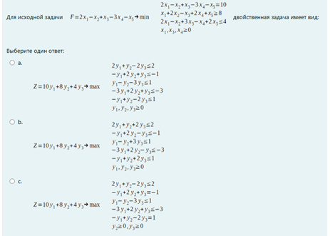 Для исходной задачи ___ ___ двойственная задача имеет вид: