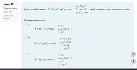 Для исходной задачи ___ ___ двойственная задача запишется в виде: