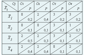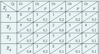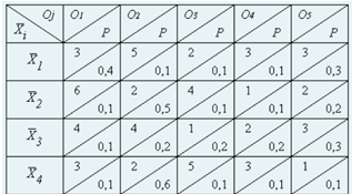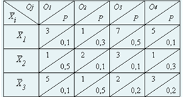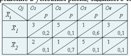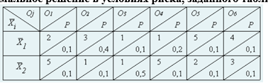 Определить оптимальное решение в условиях риска, заданного таблицей: