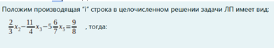 Положим производящая “i” строка в целочисленном решении задачи ЛП имеет вид: