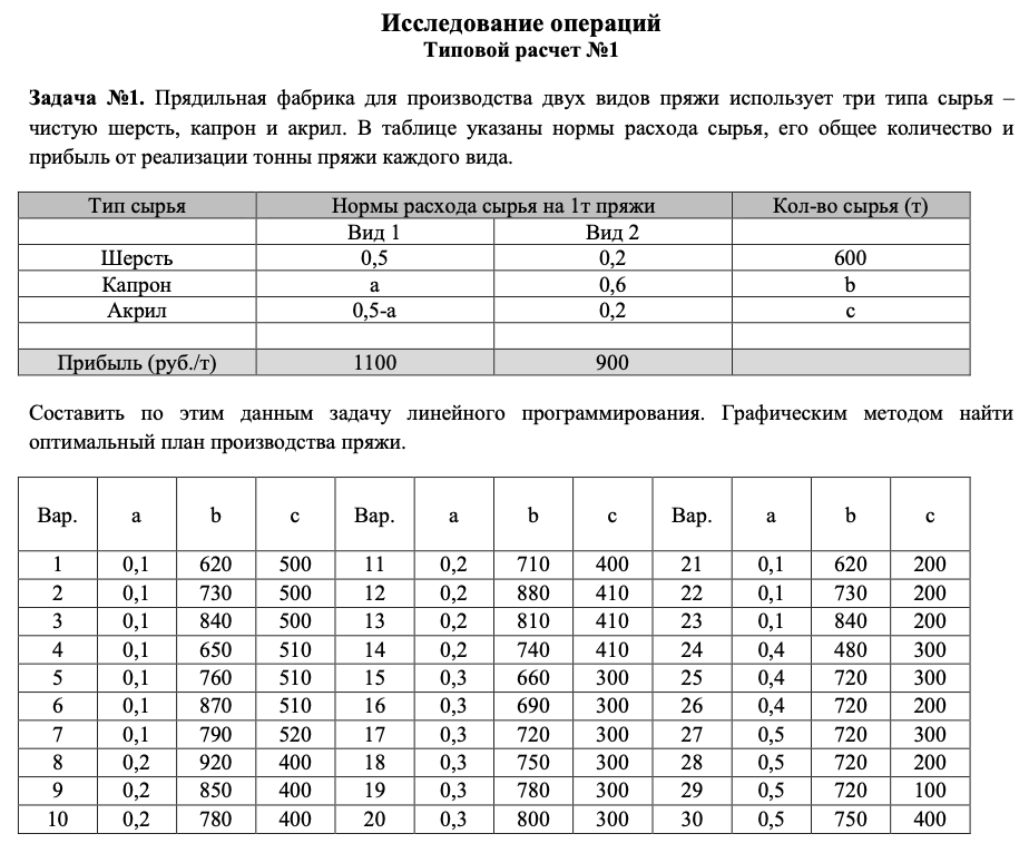 Готовый типовой расчет № 1 по исследованию операций, вариант 11, ИБМ, МГТУ им. Н. Э. Баумана. Решен на максимальный балл.