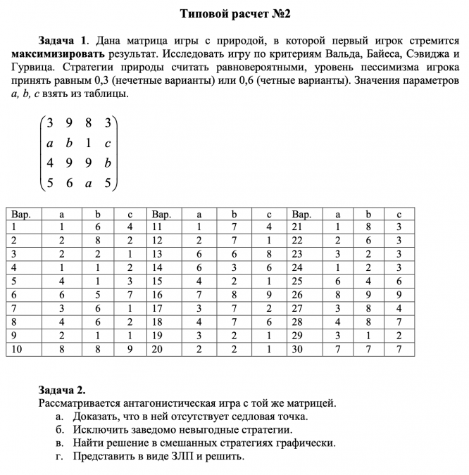Готовый типовой расчет № 2 по исследованию операций, вариант 11, ИБМ, МГТУ им. Н. Э. Баумана. Решен на максимальный балл.