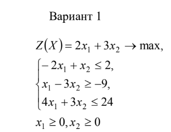 Задача 1: Графический метод решения задачи с 2 переменными вариант 1