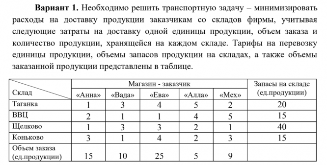 Задача 7: Решение транспортной задачи в Excel вариант 1