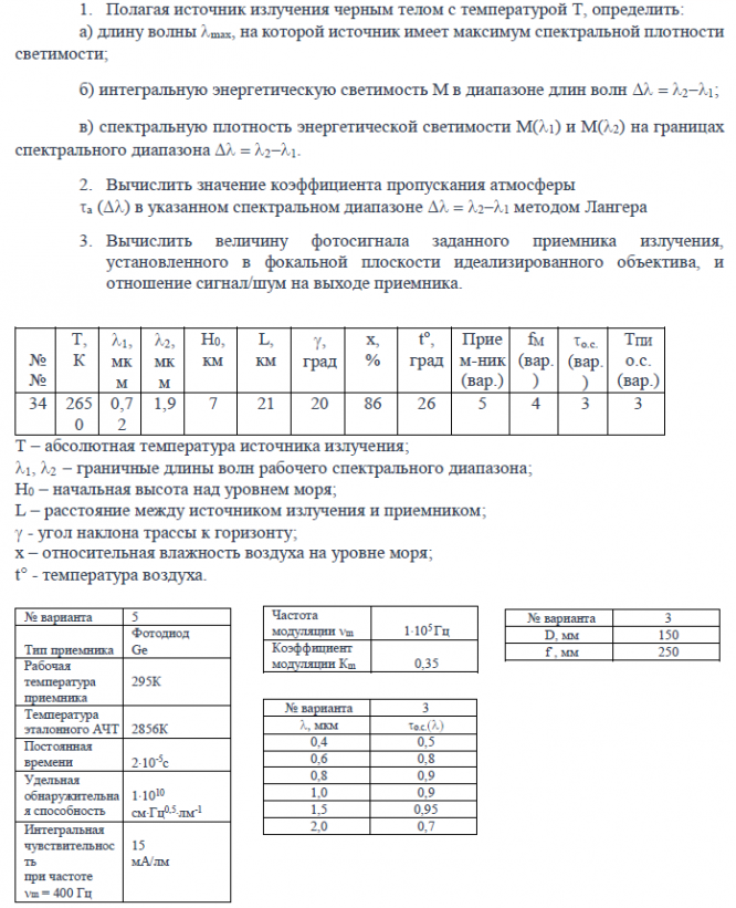 Для студентов МГТУ им. Н.Э.Баумана по предмету Источники и приёмники излученияДомашнее задание (вариант №34)Домашнее задание (вариант №34)