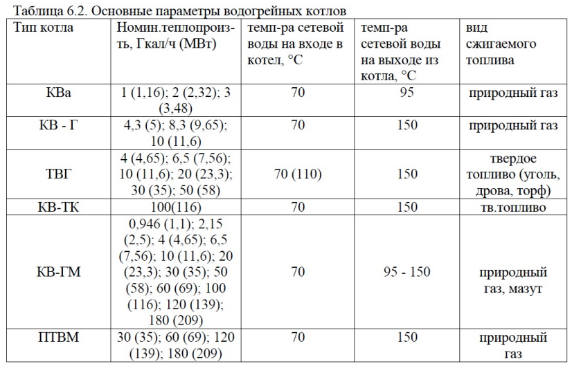11) Задание по вариантам: подберите тип и количество котлоагрегатов для водогрейной котельной исходя из следующих данных (характеристики котлоагрегатов см. табл. 6.2)
