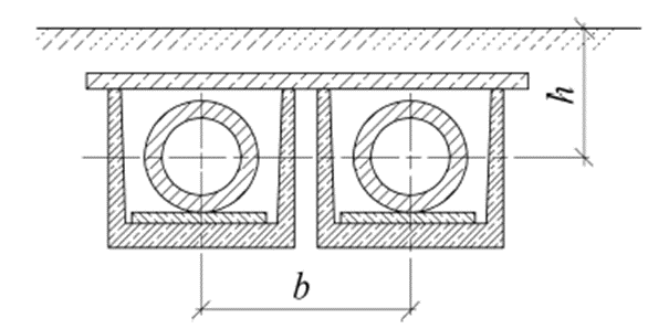 Определить эффективность тепловой изоляции теплопроводов двухтрубной тепловой сети с диаметром теплопроводов dн, проложенных в каналах КС 210×120 (рисунок 4). Среднегодовая температура сетевой воды в подающем трубопроводе τср1, в обратном τср2. Глубина заложения оси теплопроводов h=1,2 м.