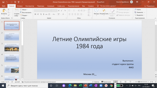 Презентация и доклад по ИФК на тему "Летние Олимпийские игры 1984 года".