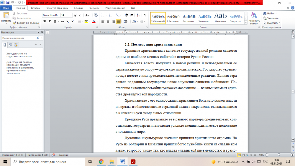 Реферат Принятие православия и его цивилизационное влияние на историю России. Особенности русского православия.docx