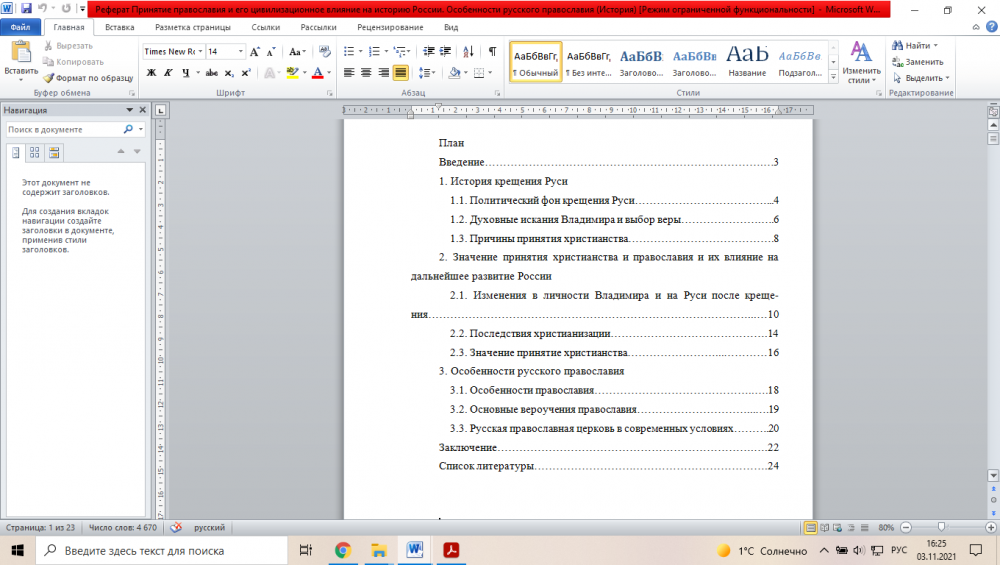Реферат "Принятие православия и его цивилизационное влияние на историю России. Особенности русского православия". Объем документа 23 страницы (титульный лист отсутствует)