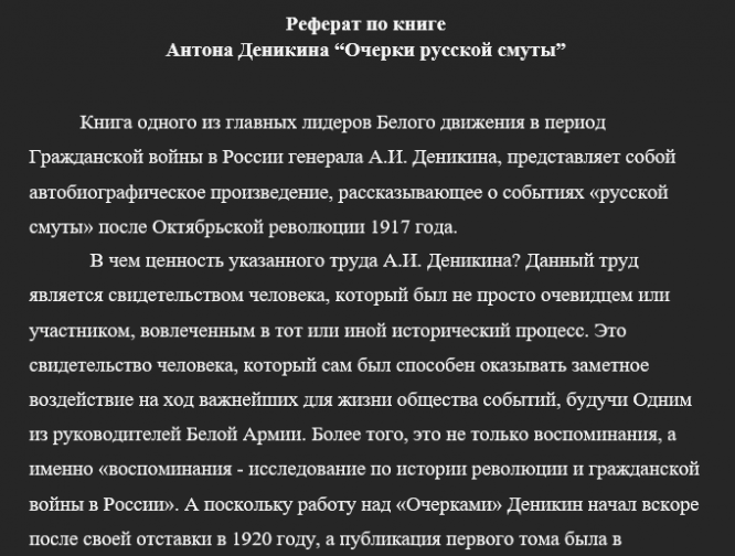 Главная » Учебные материалы » История России » Рефераты » МГТУ им. Н.Э.Баумана » Несколько классов/семестров » Реферат по книге Антона Деникина “Очерки русской смуты”. История России