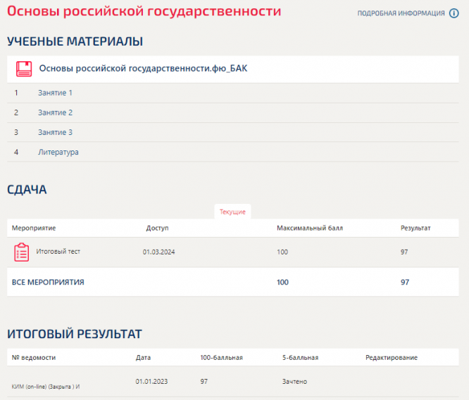 Итоговый результат 97 баллов из 100 (Отлично).