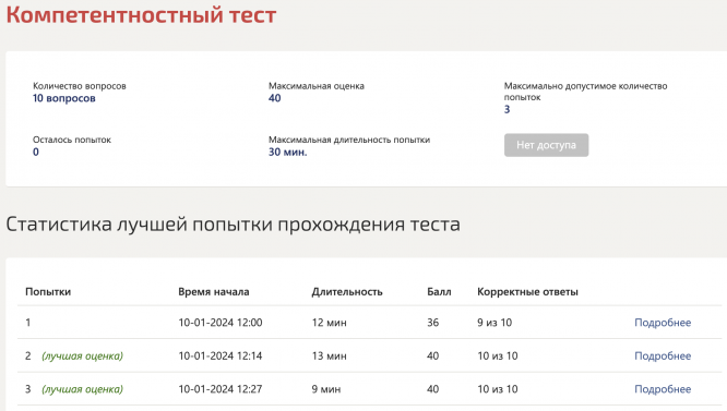 Сдав итоговый тест у вас будет только "тройка". Чтобы сдать историю России на "хорошо" или "отлично", нужно сдать компетентностный тест. В нём всего 10 вопросов, на которые даётся 40 минут в Синергии, но вопросы тут заметно сложнее, чем в промежутных и итоговом тестах.