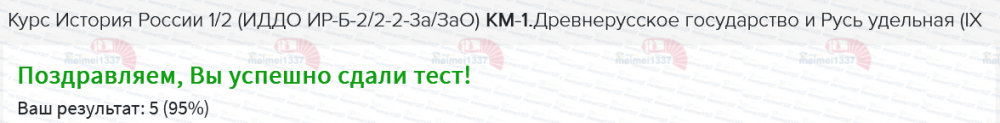 Курс История России - КМ-1. Древнерусское государство и Русь удельная (IX – первая половина XV вв.). Тестирование - 95%