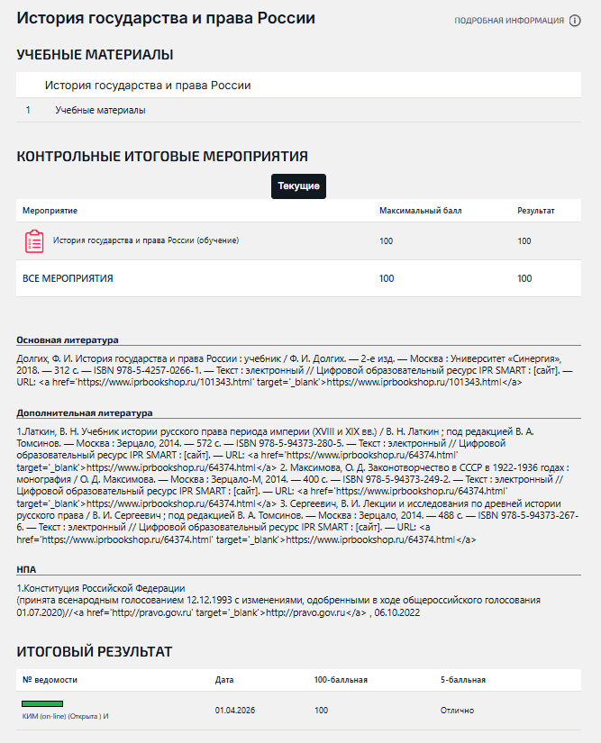 Ответы к экзамену Итоговый тест: История государства и права России