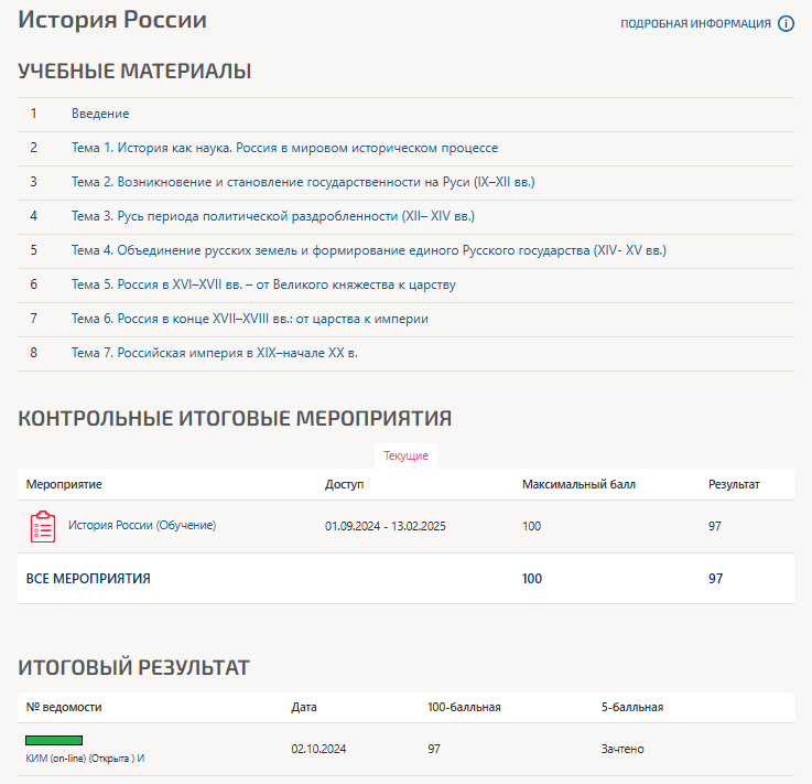 💯 История России (Темы 1-7) МТИ Ответы на тест