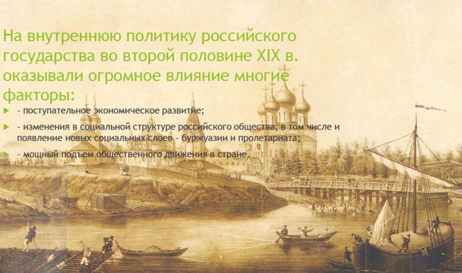 Факторы, оказавшие на внутреннюю политику российского государства во второй половине XIX в. огромное влияние