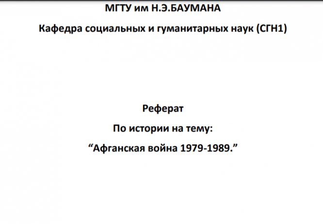 Для студентов МГТУ им. Н.Э.Баумана по предмету ИсторияАфганская война 1979-1989Афганская война 1979-1989