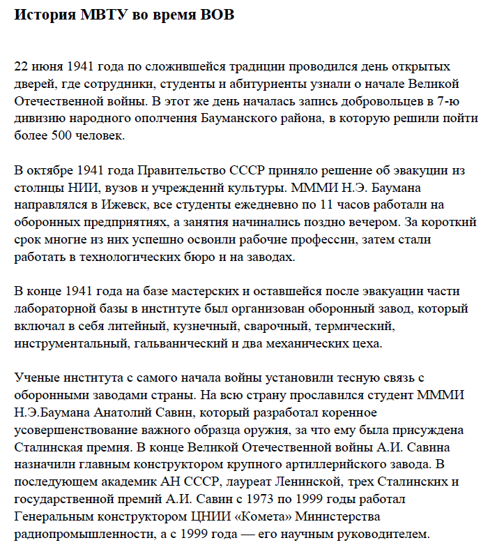 Для студентов МГТУ им. Н.Э.Баумана по предмету ИсторияМВТУ им Н.Э. Баумана в период Великой Отечественной войныМВТУ им Н.Э. Баумана в период Великой Отечественной войны