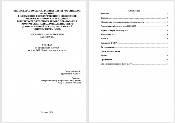 Для студентов МАИ по предмету ИсторияНа тему: В.И. Ленин - человек и политикНа тему: В.И. Ленин - человек и политик