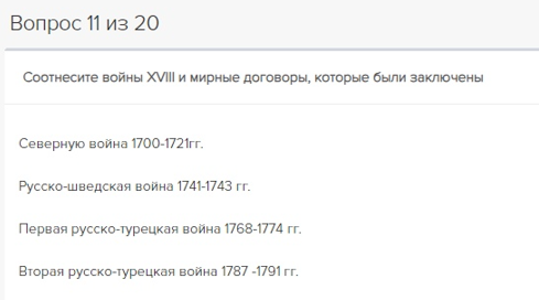 Соотнесите войны XVIII и мирные договоры, которые были заключены