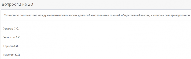 Установите соответствие между именами политических деятелей и названиями течений общественной мысли, к которым они принадлежали