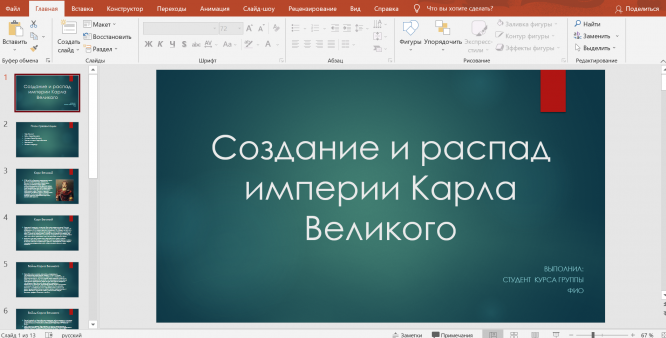 Для студентов РГУФКСМиТ по предмету ИсторияПрезентация по истории. Создание и распад империи Карла Великого.Презентация по истории. Создание и распад империи Карла Великого.