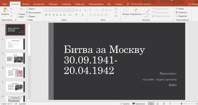 Для студентов РГУФКСМиТ по предмету ИсторияПрезентация по истории. Битва за Москву 30.09.1941-20.04.1942Презентация по истории. Битва за Москву 30.09.1941-20.04.1942