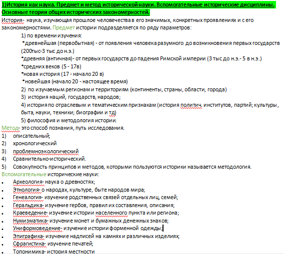 1. История как наука. Предмет и метод исторической науки. Вспомогательные исторические дисциплины. Основные теории общих исторических закономерностей.